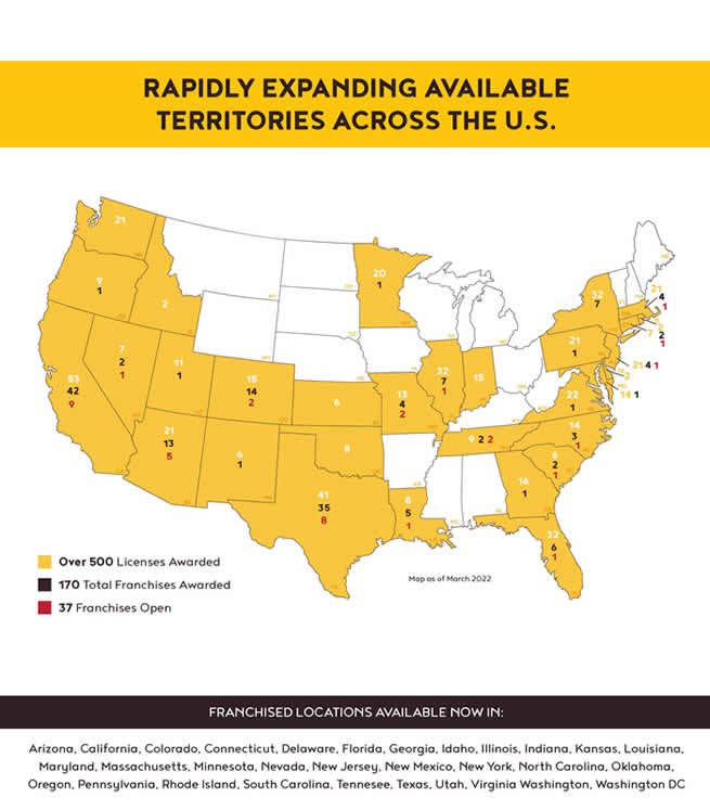 Turn-key build out and locations near grocery anchored, high foot traffic shopping centers (preferred 1200 to 1600 sq. ft.)